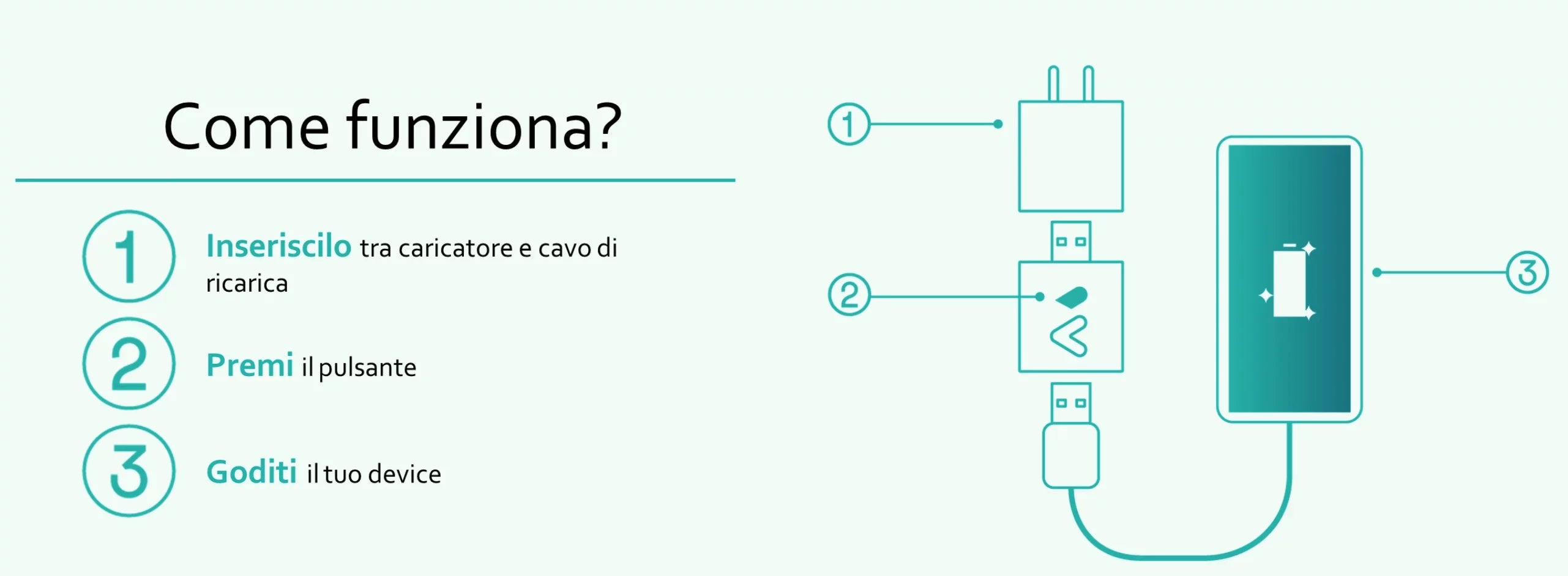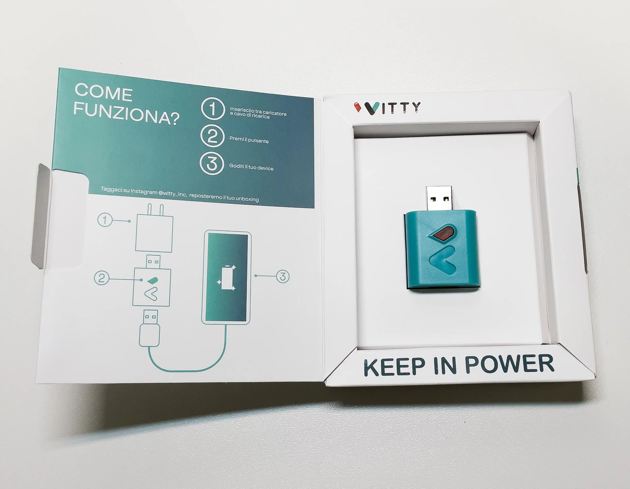 Witty è un piccolissimo dispositivo da collegare al caricatore a muro con lo scopo di raddoppiare la durata della vita di una batteria a litio, come quella presente nei nostri smartphone.