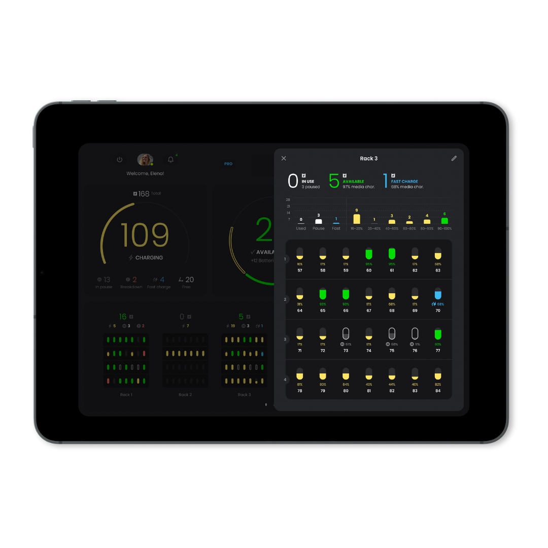 Unser Algorithmus bewahrt die Ihre Assets und vermeidet durch fortschrittliches Management den Verschleiß von Lithium. Witty SaaS X stoppt den Ladevorgang bei 80 Prozent und vervollständigt ihn zum Zeitpunkt des Pickings auf 100 Prozent.